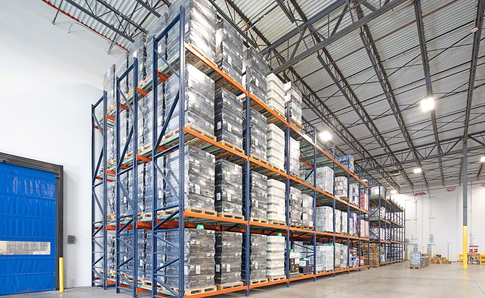 Il magazzino è composto da 31 corridoi con scaffalature portapallet a profondità singola su ogni lato. Sono alte 9 m (con quattro o sette livelli) e possono ospitare 9.200 pallet GMA da 1.000 x 1.200 mm.