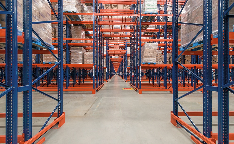 Il magazzino è caratterizzato da un efficiente ciclo operativo e dalla sua grande semplicità. È costituito da scaffalature portapallet di Mecalux che, grazie all'accesso diretto ai pallet, offrono estrema dinamicità alla gestione della merce e alla preparazione degli ordini.