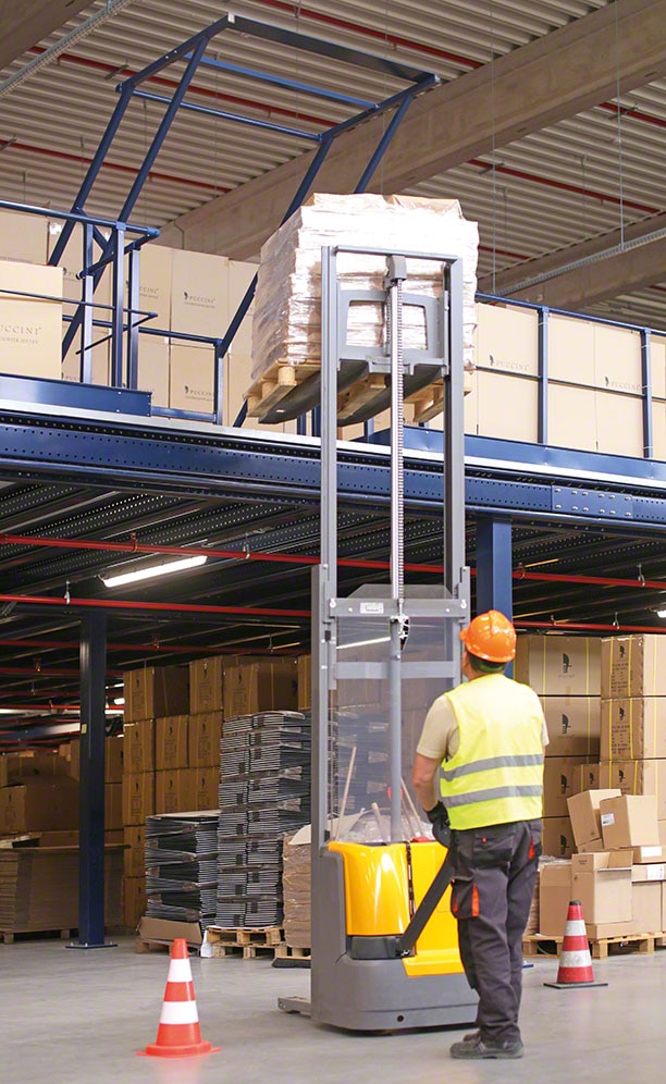 Su entrambi i livelli, Puccini stocca prodotti finiti di grandi dimensioni. Ciò è possibile grazie alla robustezza dell'impianto, potendo sopportare un carico massimo di 250 kg per ogni metro quadro. Inoltre, il pavimento del soppalco è antiscivolo, per cui gli operatori possono manipolare la merce in modo sicuro.
