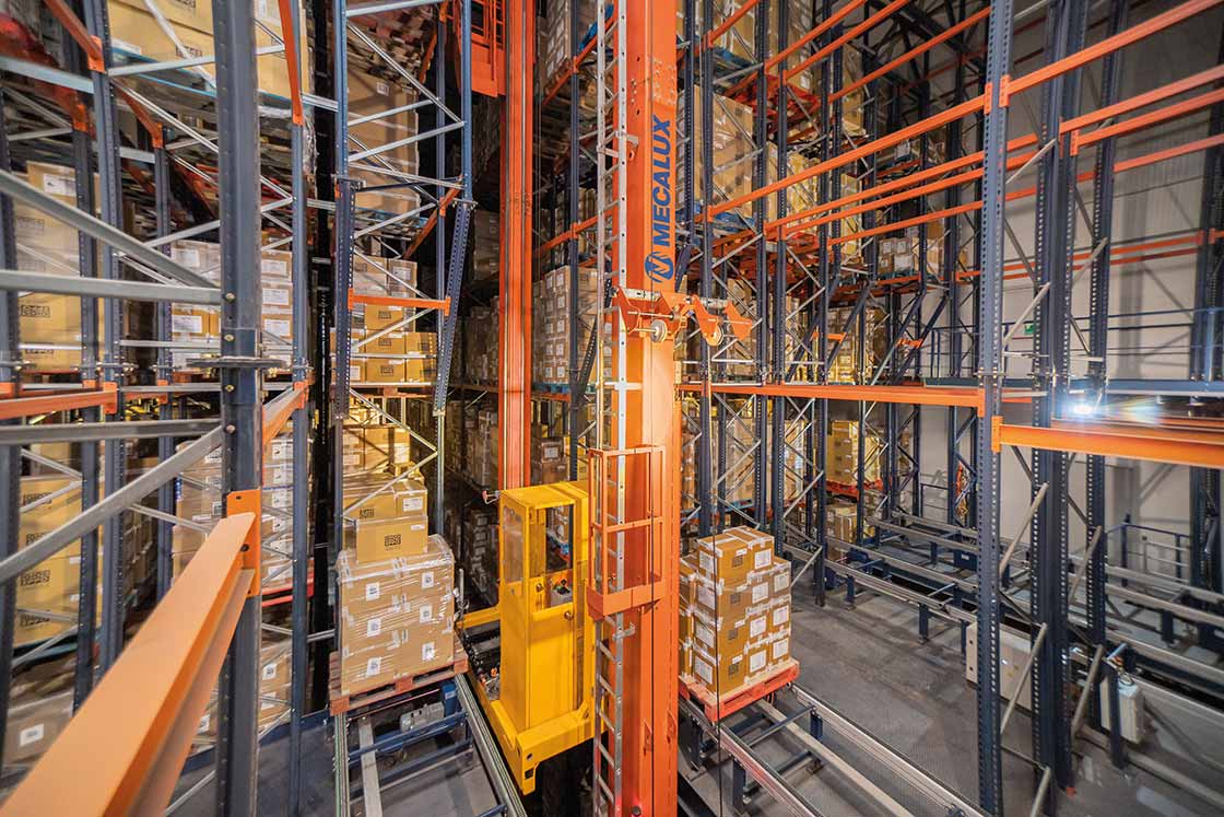 Ad Elche (Spagna), Gioseppo ha due depositi attrezzati con soluzioni di Mecalux: un magazzino automatico autoportante per pallet con capacità per 5.844 unità e un altro destinato al picking, con scaffalature che ospitano 480.000 cassette. Complessivamente, si gestiscono 1,6 milioni di unità di scarpe.
