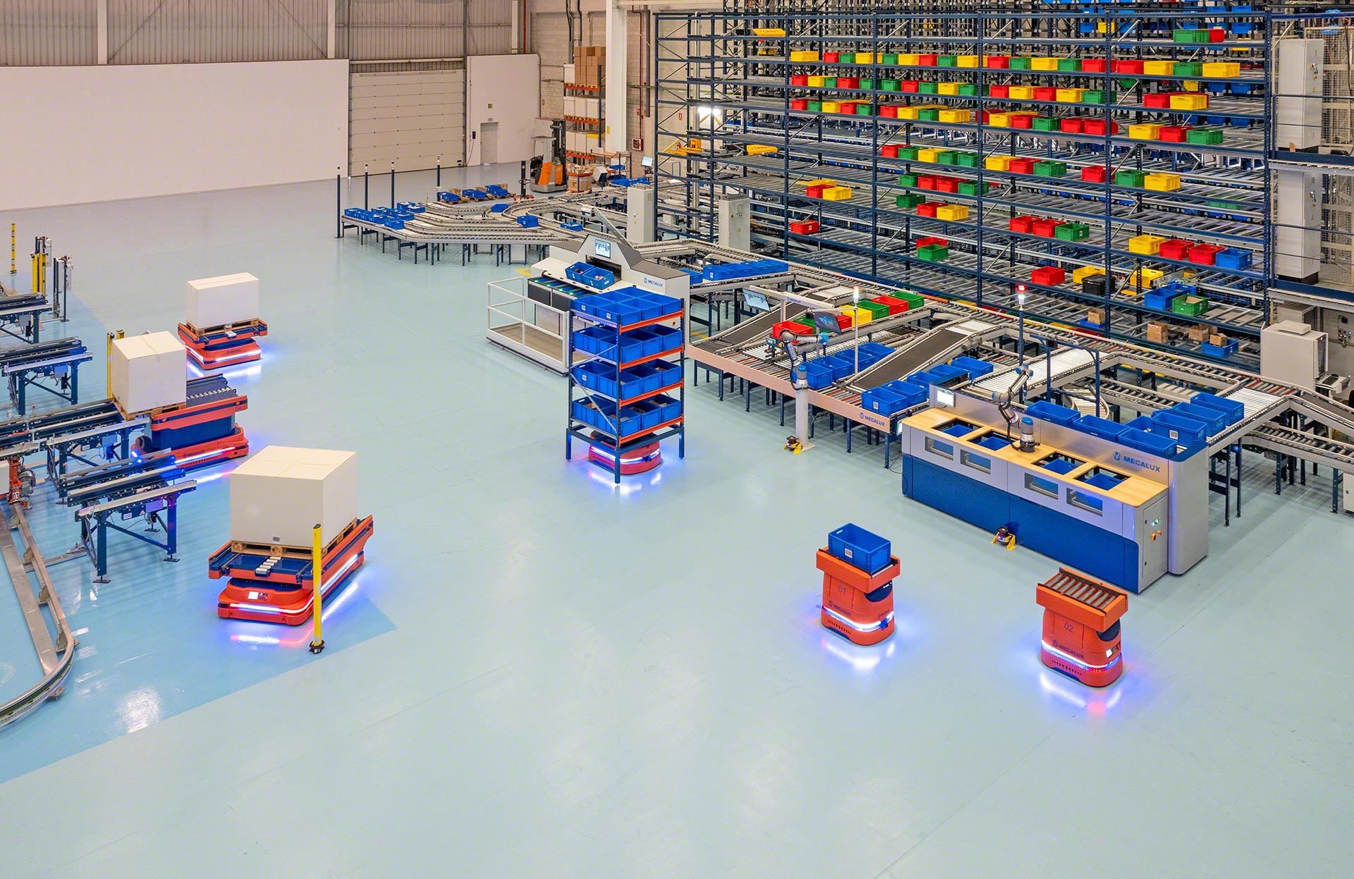 Gli AMR di Mecalux sono dispositivi molto versatili che si integrano facilmente in tutti i tipi di magazzini, poiché non richiedono modifiche all'infrastruttura esistente. I diversi modelli della serie formano un gruppo multifunzionale che copre la movimentazione di un'ampia varietà di carichi, da contenitori, vassoi e pacchi a scaffalature e pallet. Il suo utilizzo contribuisce a rendere più dinamico e flessibile il flusso interno delle merci in molteplici operazioni intralogistiche, aumentando la produttività e l'efficienza del magazzino.
