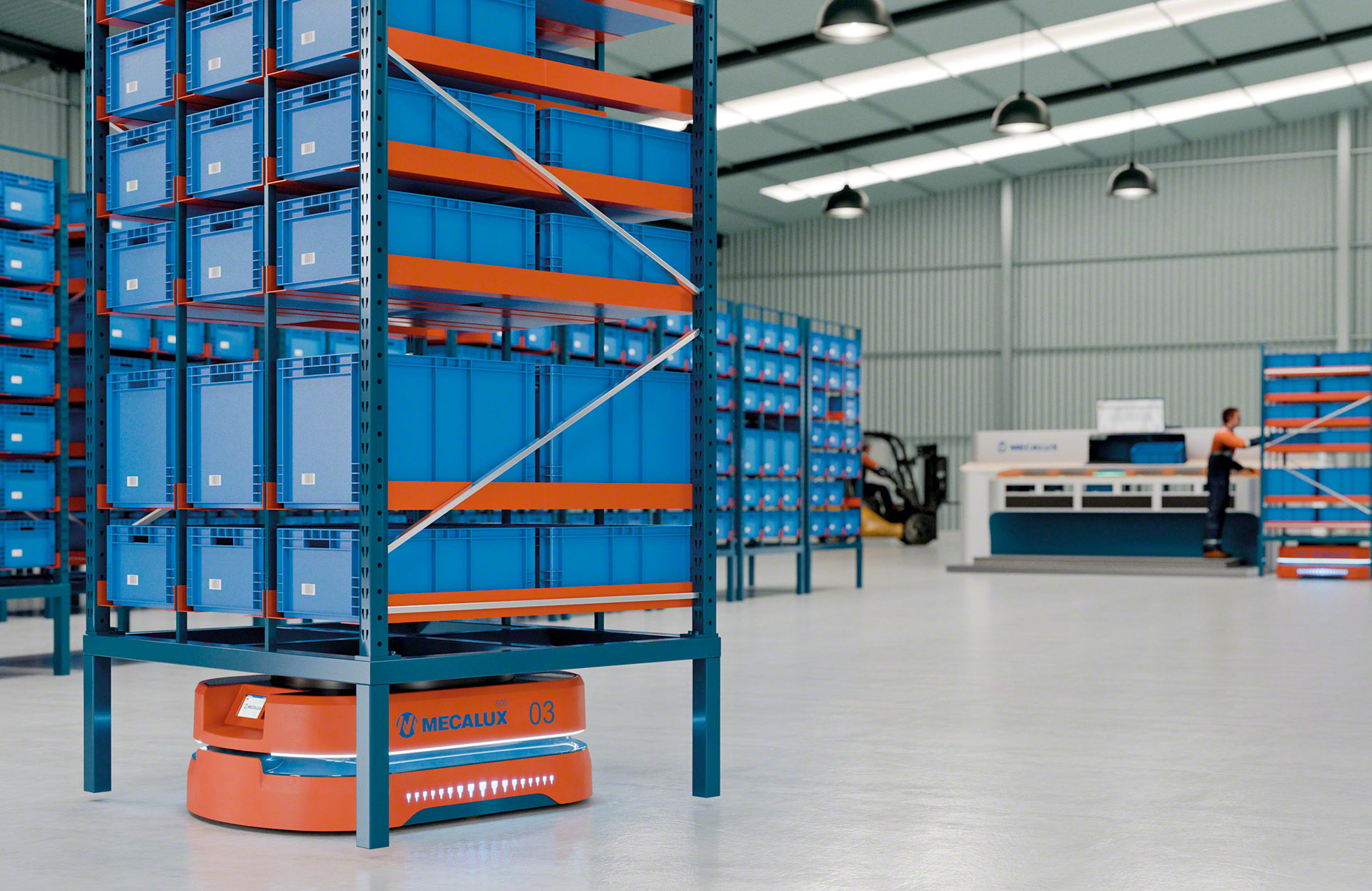 La serie di robot mobili autonomi di Mecalux comprende modelli sviluppati per il trasporto di carichi leggeri, come l'AMR 100 (trasportatore) e l'AMR 100 (albero), che movimentano principalmente scatole, vassoi e pacchi e offrono una capacità di carico massima di 100 kg. La gamma comprende anche soluzioni per carichi medi e pesanti. L'AMR 600, utilizzato per spostare le scaffalature, può trasportare fino a 600 kg. I modelli più robusti della serie, AMR 1500 (trasportatore) e AMR 1500 (elevatore), progettati per la movimentazione dei pallet, trasportano carichi fino a 1.500 kg.