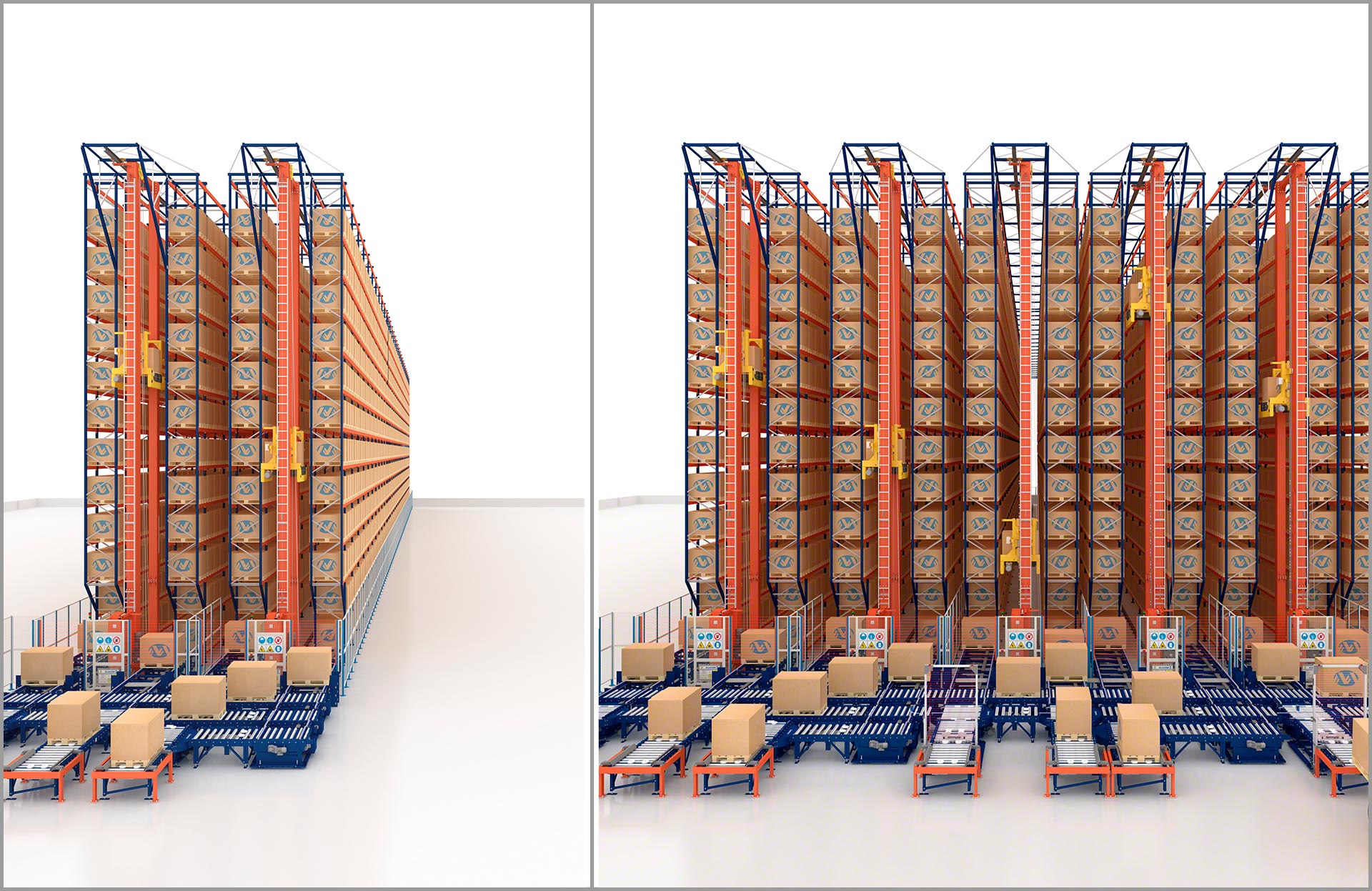 Non è indispensabile in tutti gli scenari. Quando la rotazione della merce non è molto elevata ma il volume di stoccaggio sì, non è necessario posizionare un trasloelevatore per ciascun corridoio. In questi casi, è possibile installare soluzioni per il cambio di corsia (ad esempio, un sistema di giro in curva o un ponte di trasferimento) in modo che lo stesso trasloelevatore possa operare in corsie diverse. Tuttavia, è necessario sottolineare che per raggiungere la massima efficienza in un magazzino automatico, l’ideale sarebbe utilizzare un trasloelevatore in ogni corsia.
