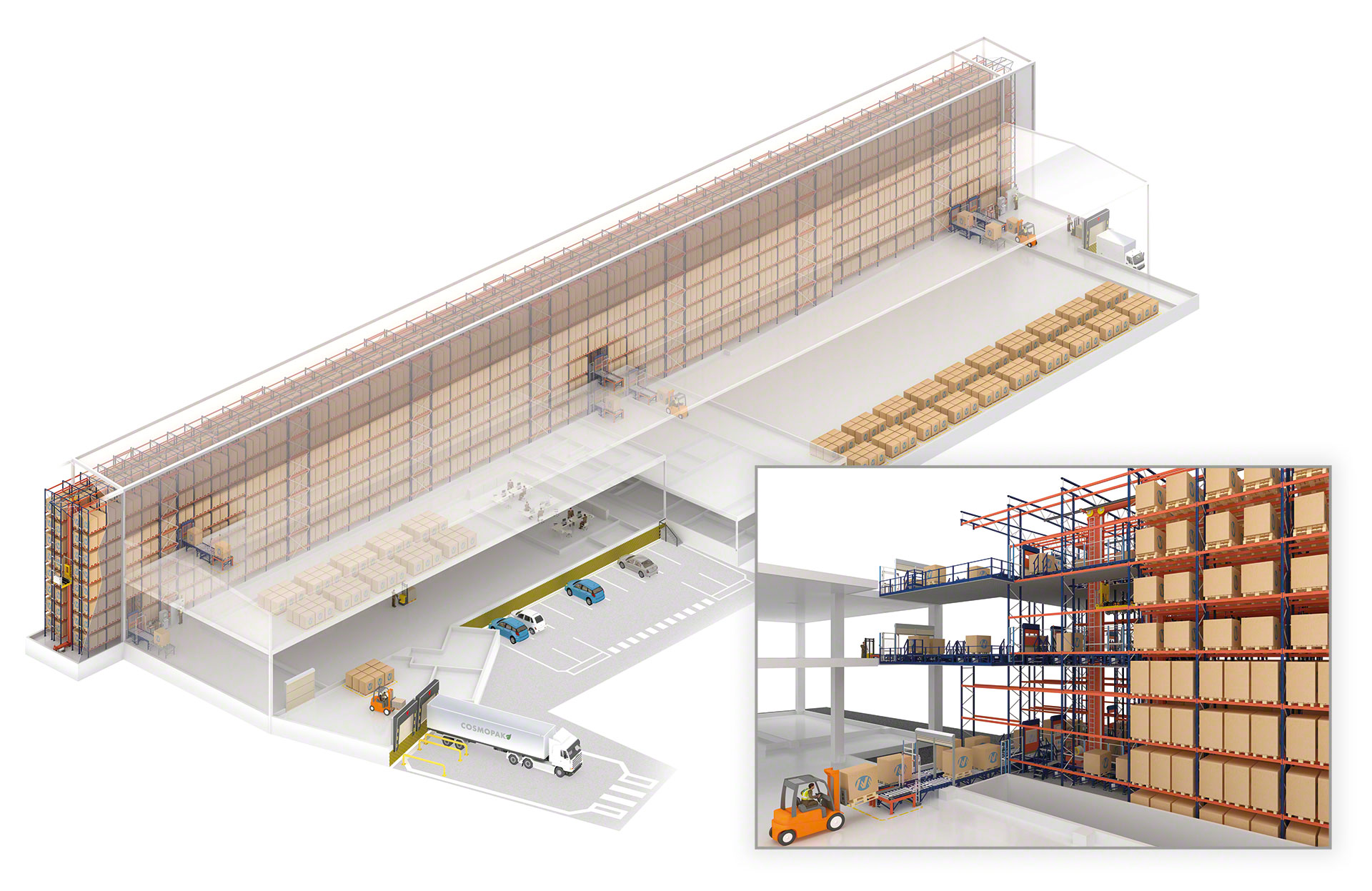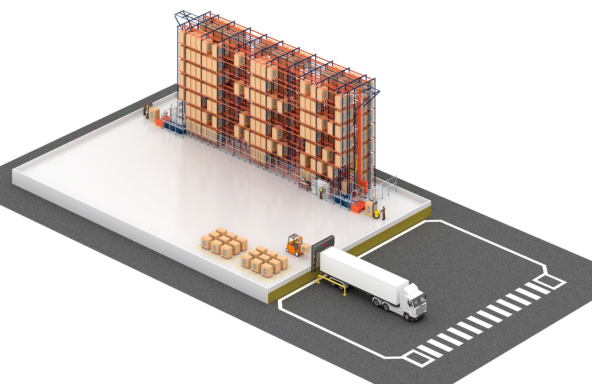 Sistema di stoccaggio progettato per depositare ed estrarre pallet in modo completamente automatico che potenzia la produttività e aumenta la capacità del magazzino.