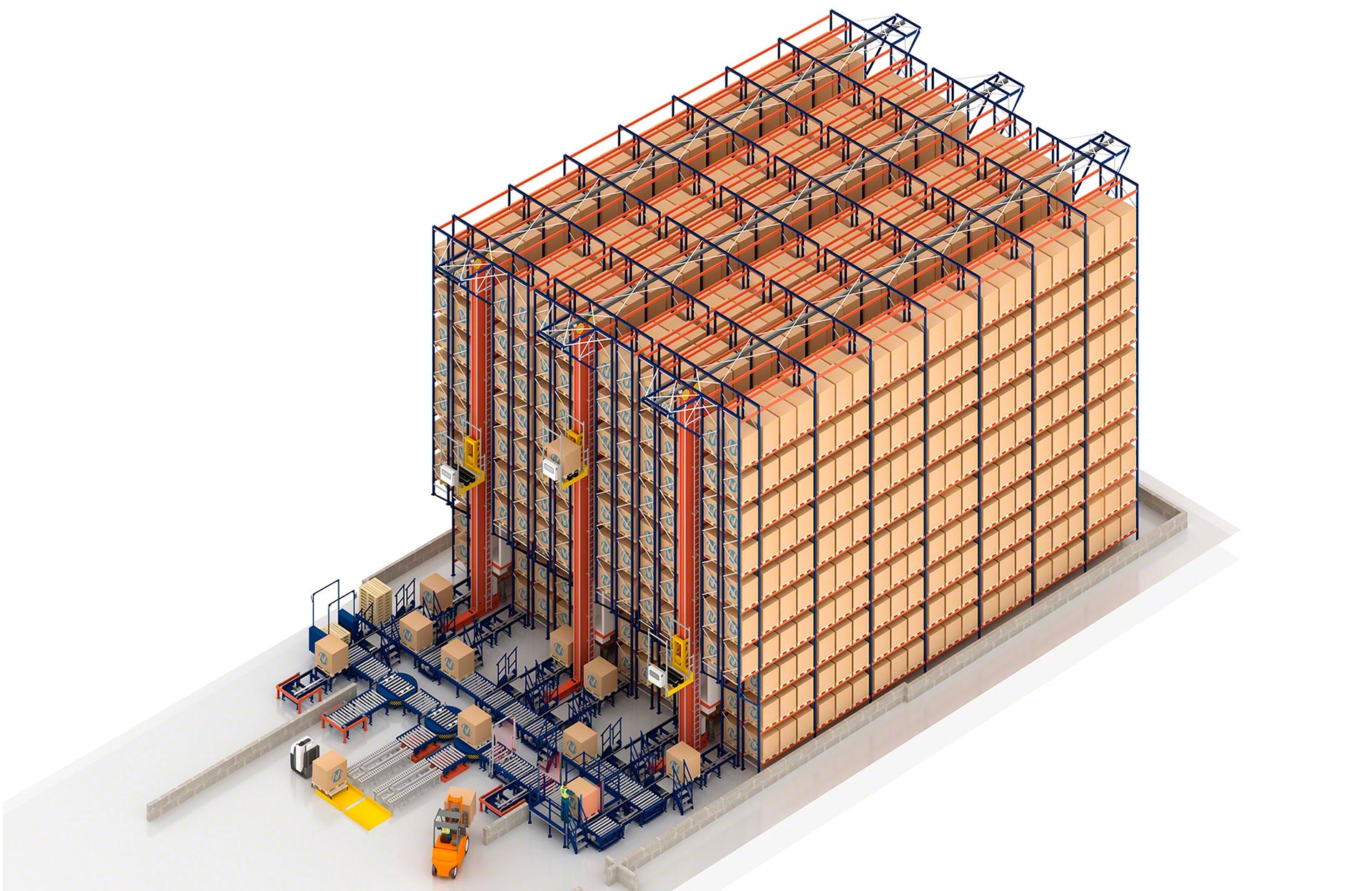 I trasloelevatori di Mecalux sono dotati di tecnologia all’avanguardia che incrementa notevolmente la produttività del magazzino e sfrutta al meglio lo spazio per aumentare la capacità di stoccaggio. Inoltre, contribuisce alla riduzione di errori e rischi collegati alle operazioni manuali.
