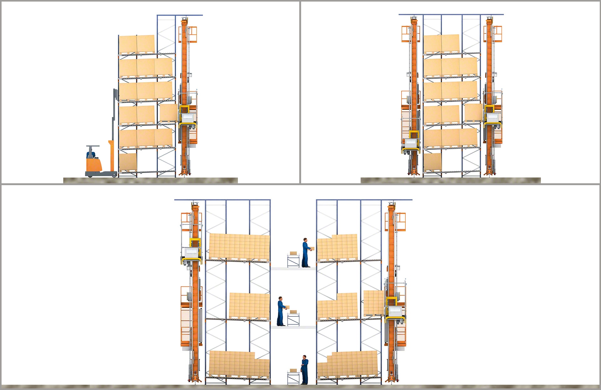 I trasloelevatori trilaterali di Mecalux permettono di automatizzare, in modo rapido ed economico e senza modificare la struttura del magazzino, le scaffalature tradizionali fino a 14 m di altezza precedentemente servite da carrelli elevatori trilaterali. L'automazione di altri sistemi di stoccaggio convenzionali, tuttavia, richiede la sostituzione delle strutture esistenti nell'impianto. Mecalux fornisce consigli ai propri clienti nella progettazione e nell'implementazione del magazzino automatizzato più adatto alle loro esigenze.