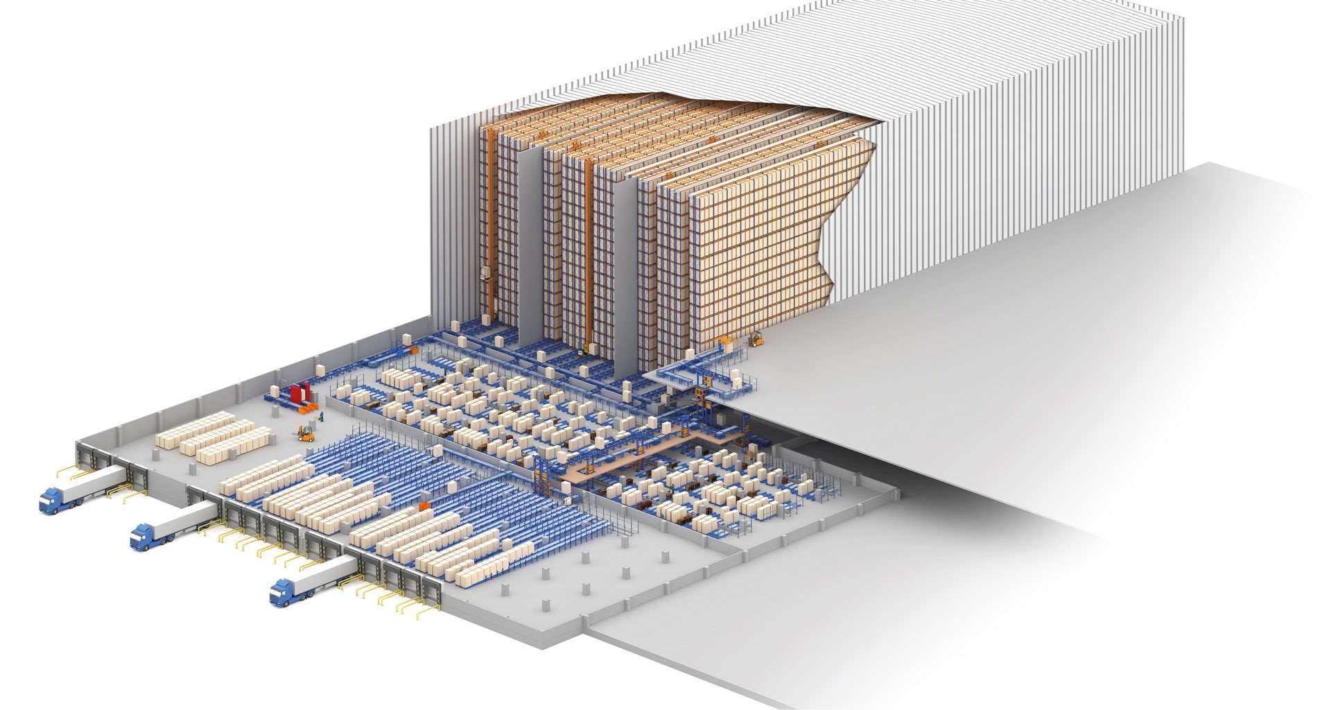 Sistemi di stoccaggio integrato in cui le scaffalature costituiscono la struttura del magazzino. Ottimizzazione della superficie, risparmio sui costi e maggiore velocità di esecuzione.