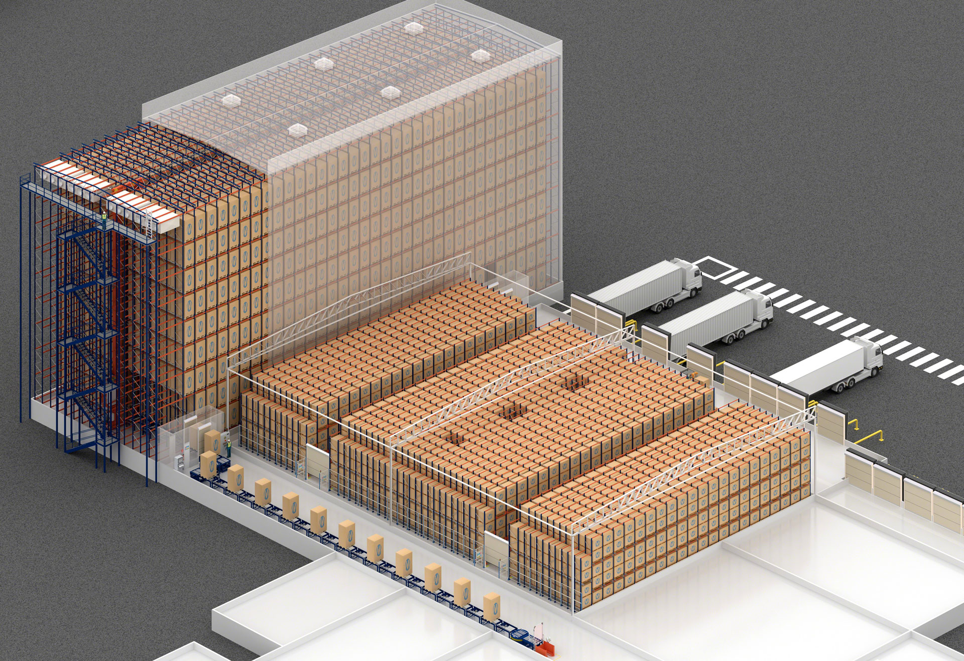 Con il magazzino autoportante installato da Mecalux in soli 3.500 m² possiamo stoccare fino a 15.000 pallet; ciò sarebbe impossibile in un magazzino tradizionale