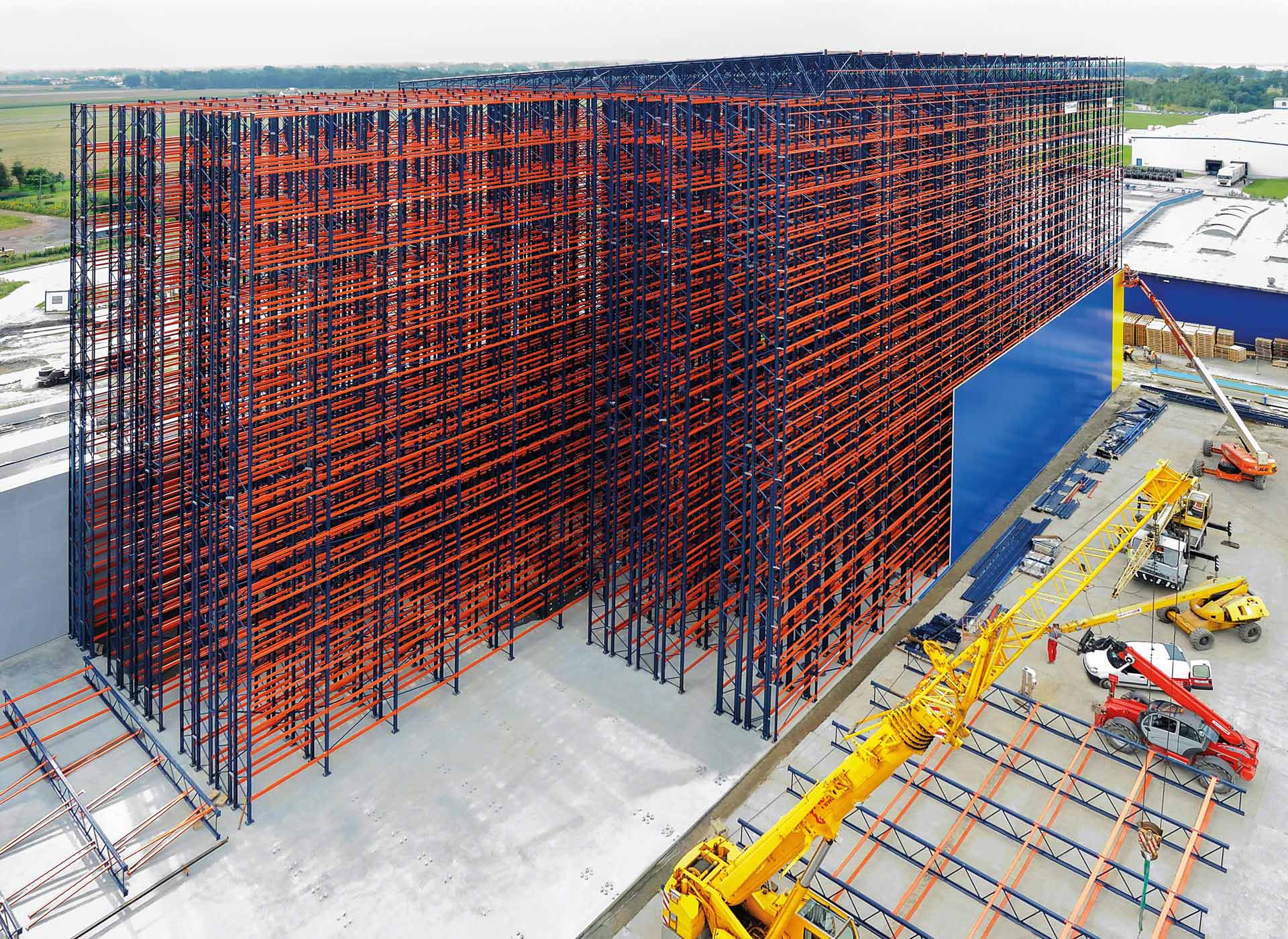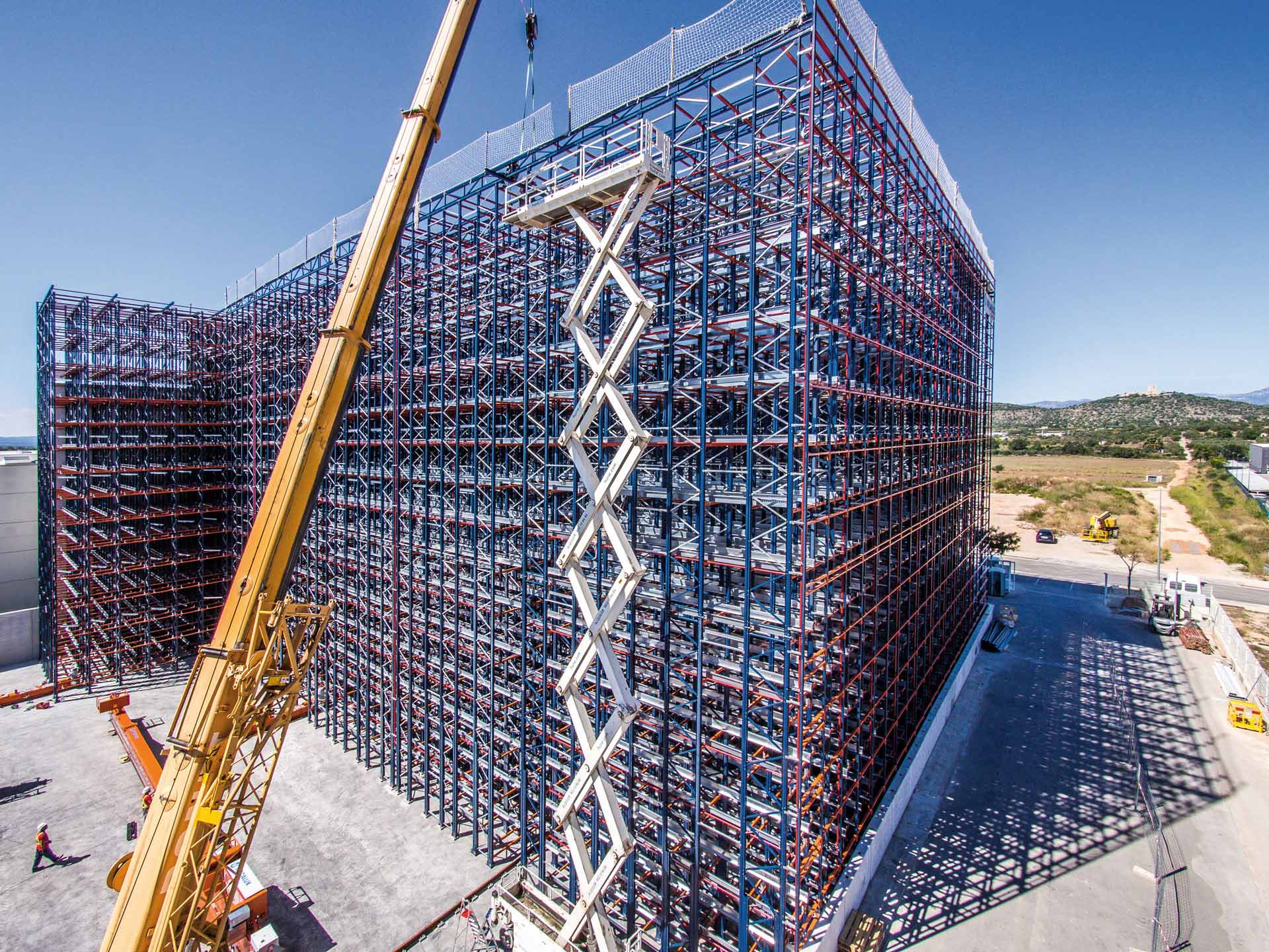 I magazzini autoportanti sono edifici il cui principale componente strutturale sono le scaffalature stesse. Quest’ultime non solo supportano i carichi di merce stoccata ma anche i rivestimenti laterali e del tetto così come degli agenti esterni, come la forza del vento. Per questa ragione, l’opera civile richiesta è minima, il che velocizza il montaggio e riduce i costi rispetto ai sistemi di costruzione tradizionale.