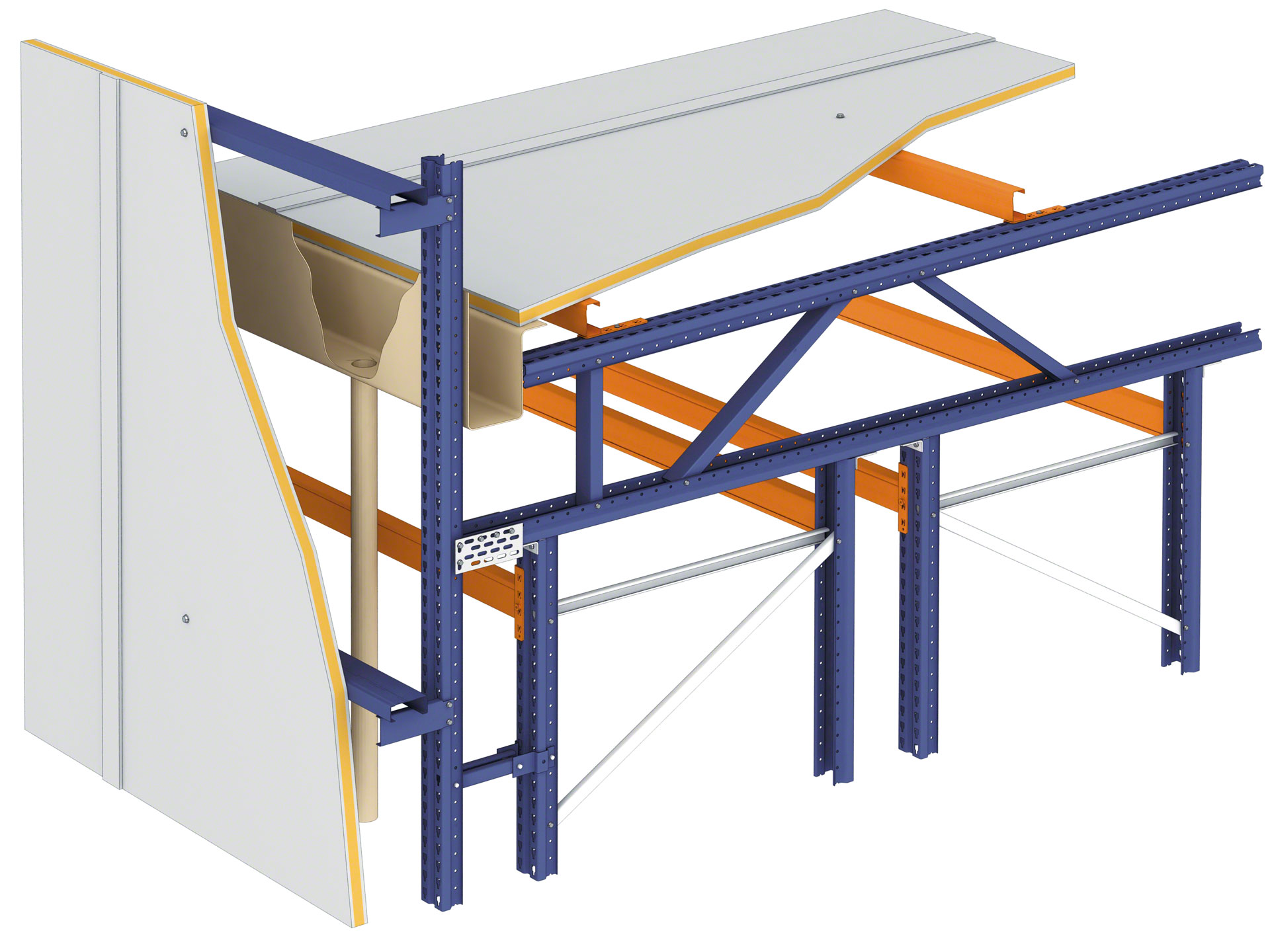 La caratteristica principale di un magazzino autoportante è che le scaffalature che lo compongono supportano sia i carichi stoccati sia la spinta dei mezzi di movimentazione così come i restanti componenti strutturali (tetto e chiusure laterali) e i vari agenti esterni (forza del vento, carichi di neve, movimenti sismici, ecc.)