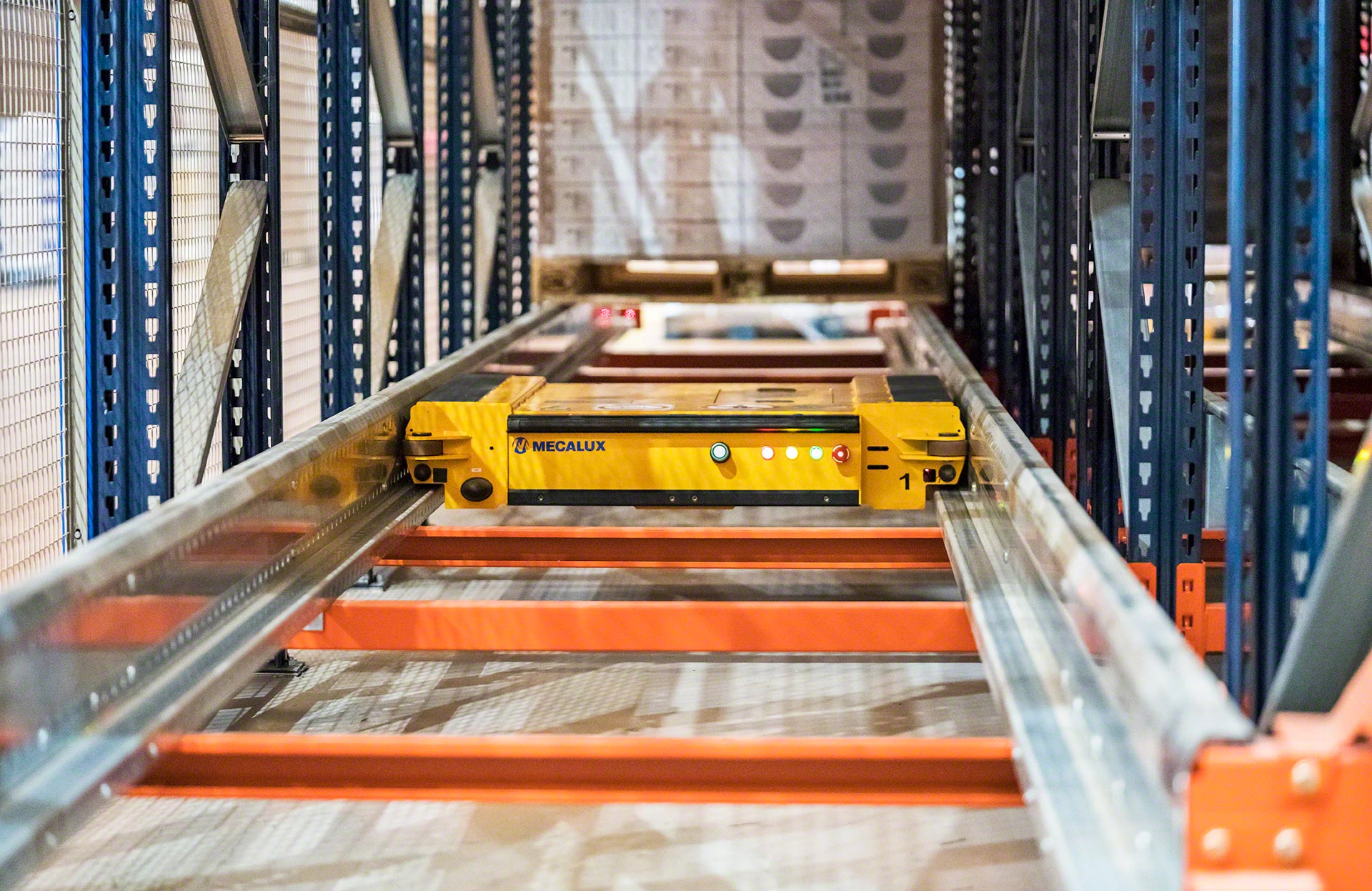 Ad ogni modo, Mecalux offre un’alternativa completamente automatizzata, il Pallet Shuttle automatico. Si tratta di una soluzione in cui il carrello elevatore viene sostituito da un trasloelevatore o un insieme di navette che trasportano, in completa autonomia, lo shuttle e il pallet dalla posizione in entrata fino al canale di stoccaggio. Inoltre, in questo sistema la gestione dei cicli operativi ricade direttamente su un software di controllo.