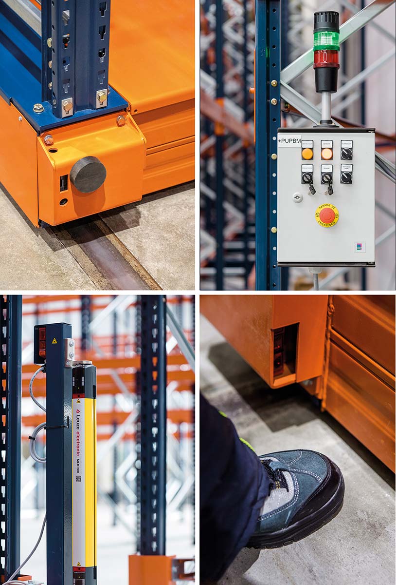 Gli operatori possono controllare il funzionamento della scaffalatura compattabile sia dai quadri di bordo (ce n’è uno per ogni base mobile) così come dai telecomandi a radiofrequenza (che si possono utilizzare, ad esempio, dai carrelli elevatori)