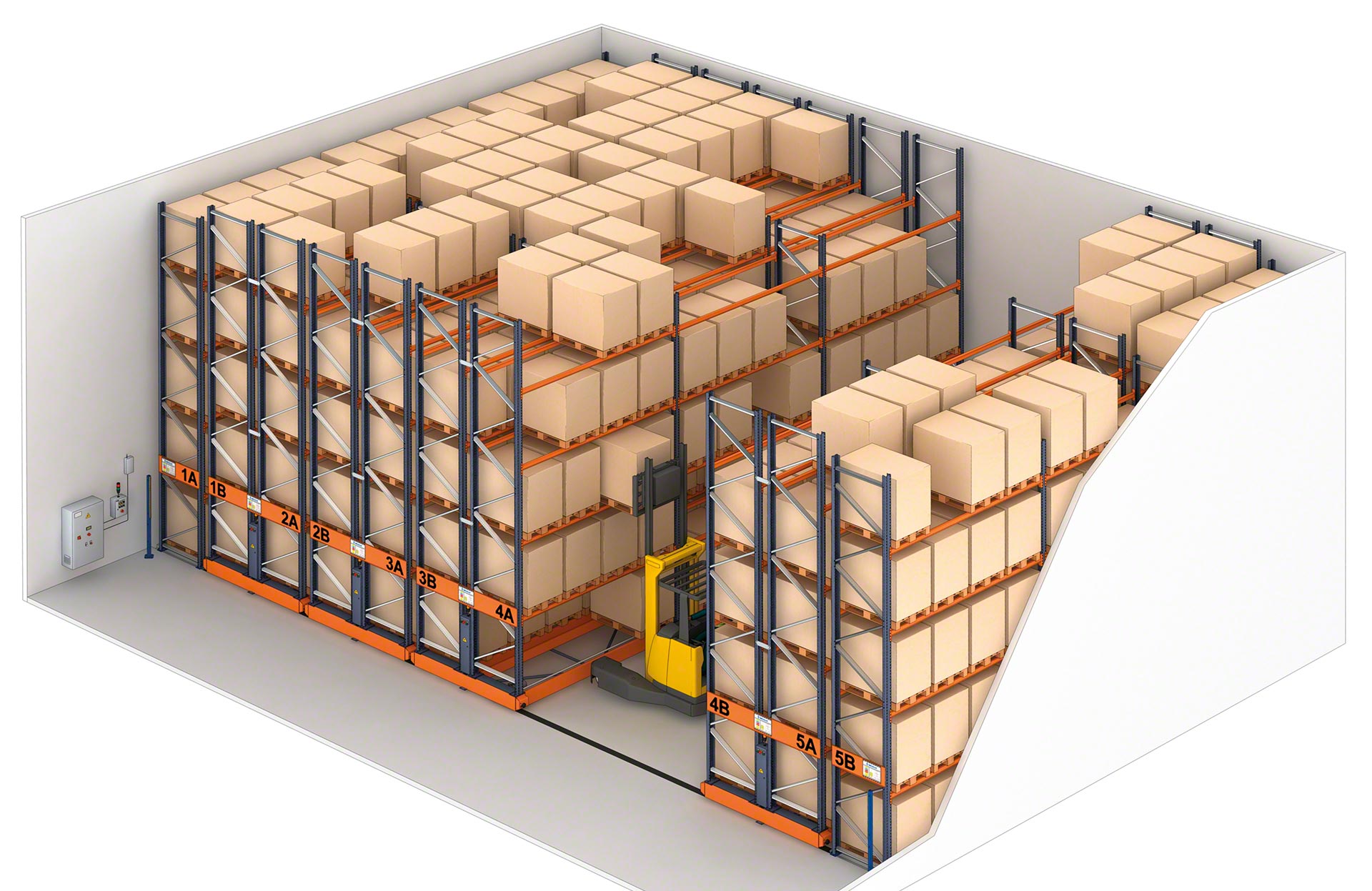 La scaffalatura compattabile è ideale per magazzini che lavorano a temperatura ambiente, refrigerata e di congelamento.. Infatti, questa soluzione risulta particolarmente vantaggiosa per lo stoccaggio a temperatura controllata, dato che il maggior sfruttamento dello spazio che offre si traduce in un significativo risparmio energetico.