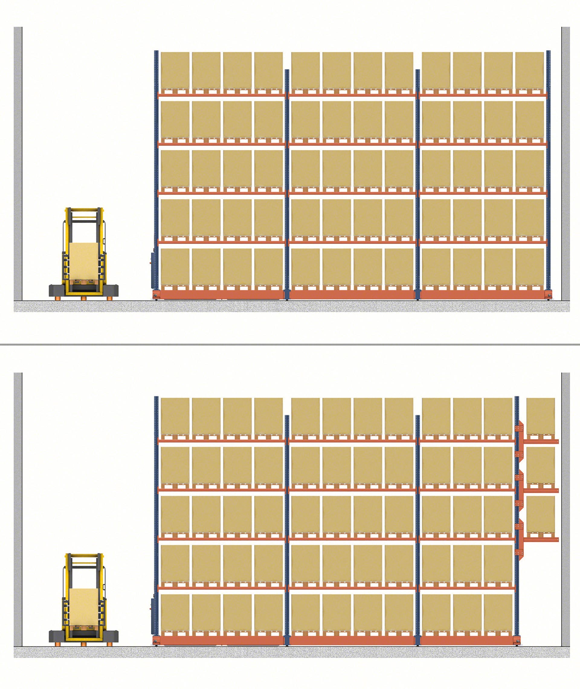 Gli scaffali compattabili Movirack sono un’eccellente alternativa quando si desidera migliorare lo sfruttamento della superficie disponibile senza rinunciare all'accessibilità totale a ogni pallet stoccato. Si tratta di un sistema che combina le prestazioni delle scaffalature portapallet tradizionali (accesso diretto, molteplici referenze. versatilità) con i vantaggi delle soluzioni di stoccaggio ad alta densità (risparmio di spazio, aumento della capacità di stoccaggio),